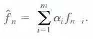 That is, the optimization criterion is chosen to minimize the mean-square prediction error, the quantization error is assumed to be negligible (e˙n ≈ en), and the prediction is constrained to a linear combination of m previous pixels.1 These restrictions are not essential, but they simplify the analysis considerably and, at the same time, decrease the computational complexity of the predictor. The resulting predictive coding approach is referred to as differential pulse code modulation (DPCM).