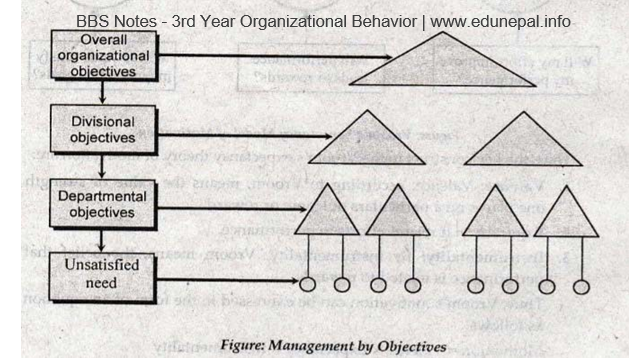 MBO provides specific objectives for each succeeding level (i.e., divisional, departmental, individual in the organization). In other words, MBO is a process by which objectives cascade down through the organization as depicted in the following figure.