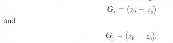 This equation is much more attractive computationally, and it still preserves relative changes in gray levels. However, this is not an issue when masks such as the Prewitt and Sobel masks are used to compute Gx and Gy.