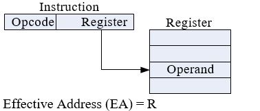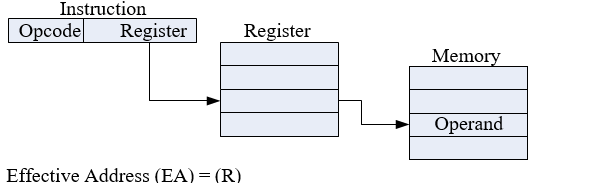 - In this mode the instruction specifies a register in the CPU whose contents give the address of the operand in the memory.