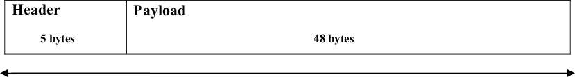 - Each cell is 53 bytes long – 5 bytes header and 48 bytes payload.