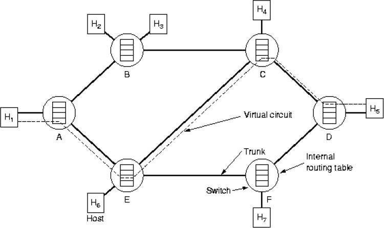 When the virtual circuit is established, what really happens is that a route is chosen from source to destination. All the switches along the way make table entries for the virtual circuit and have the opportunity to reserve resources for the new circuit. The cells are sent from one switch to the next (stored and forwarded) until they reach the destination. When a cell comes along, the switch inspects its header to find out which virtual circuit it belongs to.