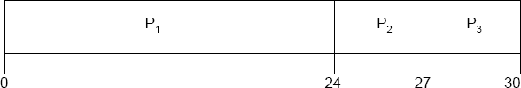 - Waiting time for P1 = 0; P2 = 24; P3 = 27