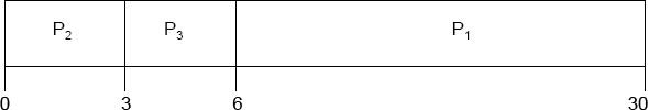 - Turnaround time for P1 = 30; P2 = 3; P3 = 6