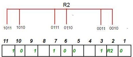 2. R2 bit is calculated using parity check at all the bits positions whose binary representation includes a 1 in the second position from the least significant