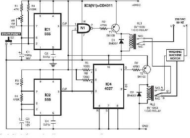 Many washing m/c shells in the market have a mechanically controlled sequence for activating the timer and the sequence back and forth for their motor; washing motor or spinning motor. Spinning motor control only has one direction, and its simple could be changed to the discrete mechanical timer which sells on the market. But washing motor control has 2 directions for this purpose, which means to squeeze the clothes, it must go forward and then reverse. The sequence is like this :