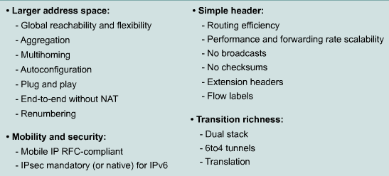 - Transition richness: You can incorporate existing IPv4 capabilities in IPv6 in the following ways: