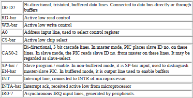 - Can be cascaded in master-slave configuration to handle 64 levels of interrupts.