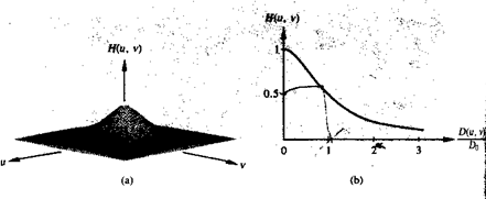 A perspective plot and cross section of the BLPF function are shown in figure 4.