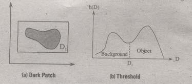 The figure 1.2 (b) consists of two peaks i.e., background and object. At the abscissa of histogram minimum (D1) the threshold is selected. This selected threshold (D1) can separate background and object to convert the image into its respective binary form. The thresholding transformations are shown in figure 1.3.