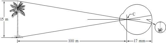Graphical representation of the eye looking at a palm tree Point C is the optical center of the lens.