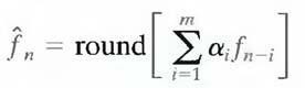 where m is the order of the linear predictor, round is a function used to denote the rounding or nearest integer operation, and the αi, for i = 1,2,..., m are prediction coefficients. In raster scan applications, the subscript n indexes the predictor outputs in accordance with their time of occurrence.