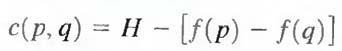 where H is the highest gray-level value in the image (7 in this case), and f(p) and f(q) are the gray- level values of p and q, respectively. By convention, the point p is on the right-hand side of the direction of travel along edge elements. For example, the edge segment (1, 2) (2, 2) is between points (1, 2) and (2, 2) in Fig. 3.5 (b). If the direction of travel is to the right, then p is the point with coordinates (2, 2) and q is point with coordinates (1, 2); therefore, c (p, q) = 7 - [7