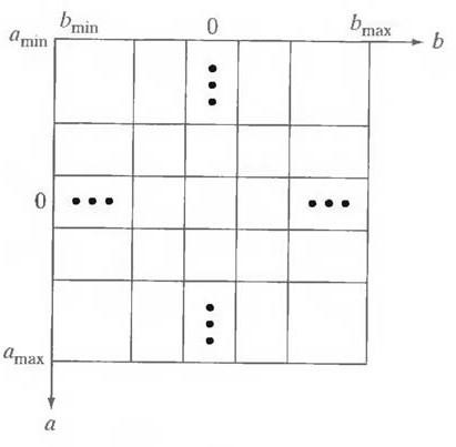 The computational attractiveness of the Hough transform arises from subdividing the parameter space into so-called accumulator cells, as illustrated in Fig. 3.2, where (amax , amin) and (bmax , bmin), are the expected ranges of slope and intercept values. The cell at coordinates (i, j), with accumulator value A(i, j), corresponds to the square associated with parameter space coordinates (ai , bi).