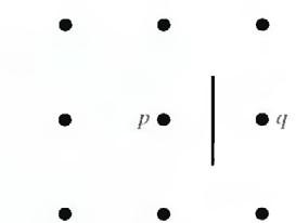 The following discussion is simplified if we define an edge element as the boundary between two pixels p and q, such that p and q are 4-neighbors, as Fig.3.4 illustrates. Edge elements are identified by the xy-coordinates of points p and q. In other words, the edge element in Fig. 3.4 is defined by the pairs (xp, yp) (xq, yq). Consistent with the definition an edge is a sequence of connected edge elements.