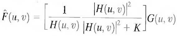 where E{•} is the expected value of the argument. It is assumed that the noise and the image are uncorrelated; that one or the other has zero mean; and that the gray levels in the estimate are a linear function of the levels in the degraded image. Based on these conditions, the minimum of the error function is given in the frequency domain by the expression