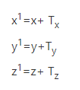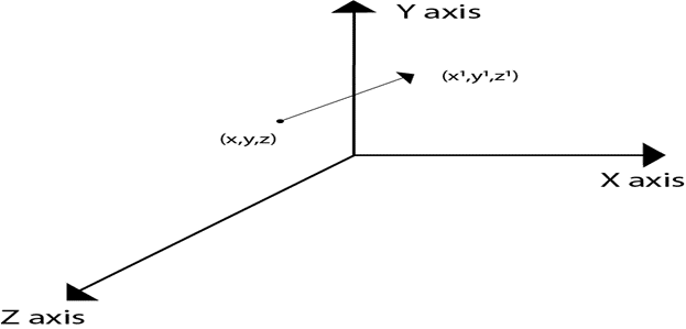 If P is a point having co-ordinates in three directions (x, y, z) is translated, then after translation its coordinates will be (x1 y1 z1) after translation. Tx Ty Tz are translation vectors in x, y, and z directions respectively.