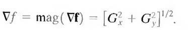 This equation is much more attractive computationally, and it still preserves relative changes in gray levels. However, this is not an issue when masks such as the Prewitt and Sobel masks are used to compute Gx and Gy.