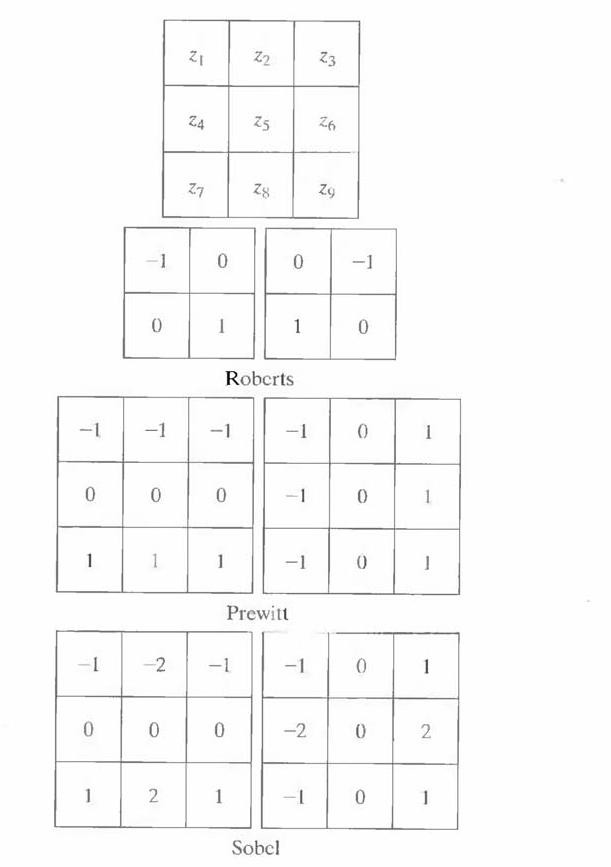 Fig.1.1 A 3 X 3 region of an image (the z’s are gray-level values) and various masks used to compute the gradient at point labeled z5.