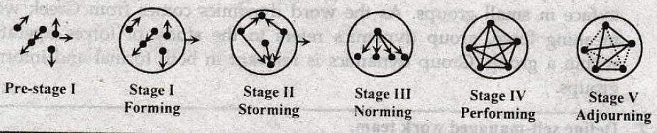 The most widely accepted stages of group development are explained below: