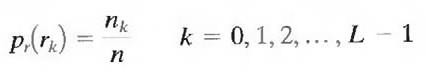 where L is the number of gray levels, nk is the number of times that the kth gray level appears in the image, and n is the total number of pixels in the image. If the number of bits used to represent each value of rk is l (rk), then the average number of bits required to represent each pixel is