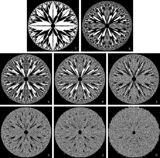 Fig.1.7 The eight bit planes of the image in Fig.1.6. The number at the bottom, right of each image identifies the bit plane.