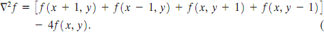 The diagonal directions can be incorporated in the definition of the digital Laplacian by adding two more terms to Eq., one for each of the two diagonal directions.The form of each new term is the same as either Eq