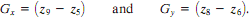 As in the case of the Laplacian, we now define digital approximations to the preceding equations, and from there formulate the appropriate filter masks. In order to simplify the discussion that follows, we will use the notation in Fig. 11.2 (a) to denote image points in a 3 x 3 region. For example, the center point, z5 , denotes f(x, y), z1 denotes f(x- 1, y-1), and so on. The simplest approximations to a first-order derivative that satisfy the conditions stated in that section are Gx = (z8 –z5) and Gy = (z6 – z5) . Two other definitions proposed by Roberts [1965] in the early development of digital image processing use cross differences: