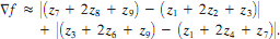 If we use absolute values, then substituting the quantities in the equations gives us the following approximation to the gradient: