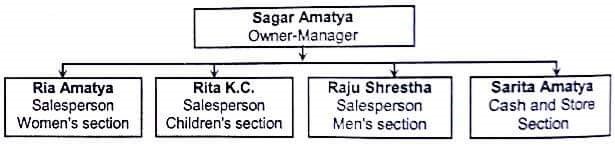 The following figure shows the simple organizational structure of New Road Fancy Store: